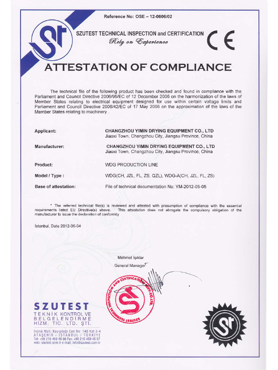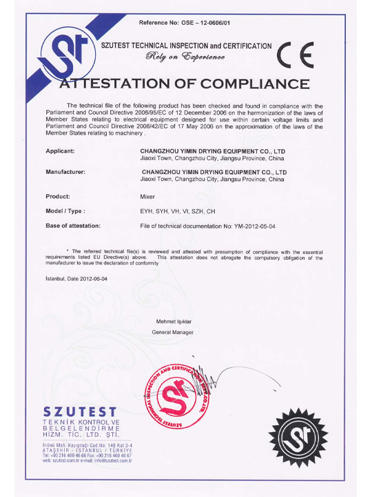 যন্ত্রপাতি এবং কম ভোল্টেজ নির্দেশাবলী শংসাপত্র